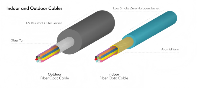 Outdoor optical cables have thicker protective layers and are usually armored (that is wrapped with metal skins).